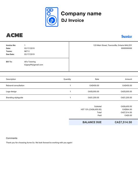 Dj Invoice Sample - Simply click on use template, customize the form with details about the. Add personal and client details : Bill for your next event with a dj invoice that’s easy to customize to any gig. A dj invoice is a bill sent by a dj or dj business to clients detailing charges owed for services provided. To customize a dj invoice,.