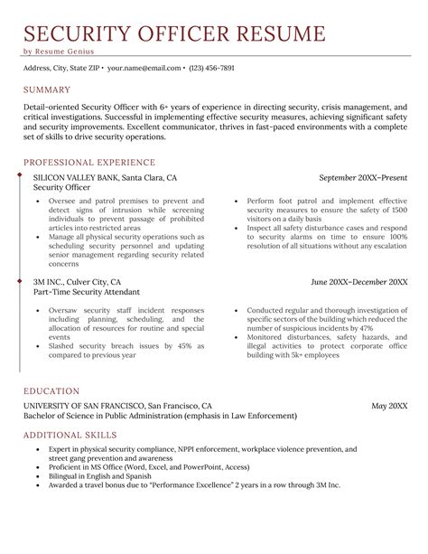 Security Officer Resumes Examples - Why this resume is strong: Proficient in security assessment and investigation. Need help writing your resume? Writing your resume as a security officer can be a difficult and intimidating task. Pursuing a career as a security officer in 2024?